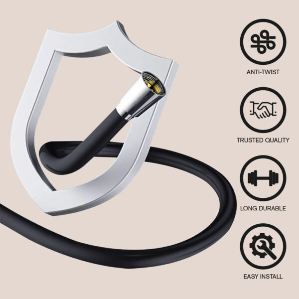 Sophisticated Matte Black Finish: The hose is finished in a durable matte black coating that resists fingerprints and corrosion. This aesthetic aligns with current design trends in luxury showers, providing a cohesive look when paired with modern fixtures and faucets.