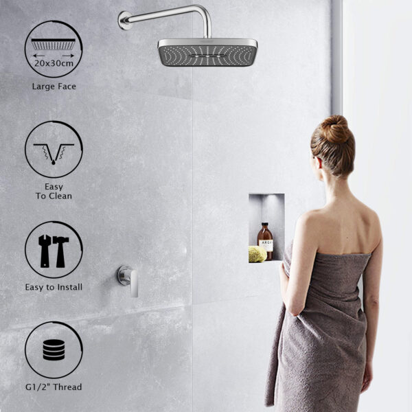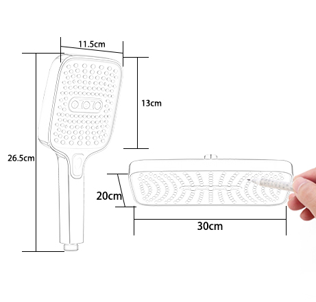 - Wide coverage: 30 × 20 cm showerhead provides an expansive spray angle to reduce rinsing time.
