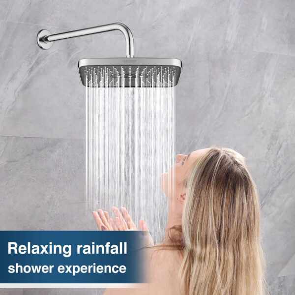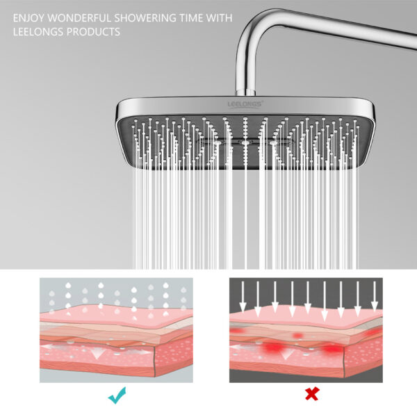 - Rain-style comfort: Large rectangular spray face creates a soothing, even rainfall sensation that covers the body for faster, more enjoyable rinsing.