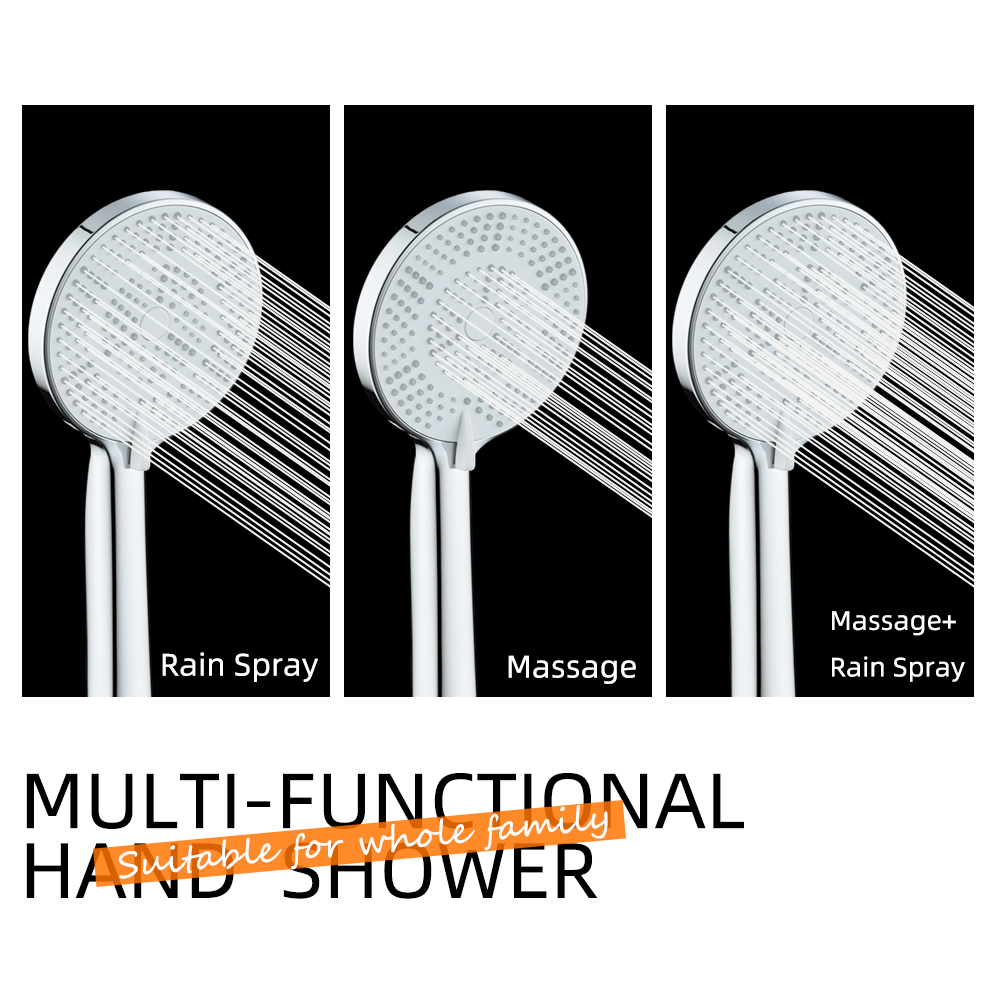 - Versatile 3-Function Performance: Users can effortlessly switch between three distinct spray patterns: a soothing Rain mode, a targeted Massage mode, and a combined Massage Rain setting. This variety allows the SH-2894 to meet diverse customer needs, from relaxation to efficient rinsing.
